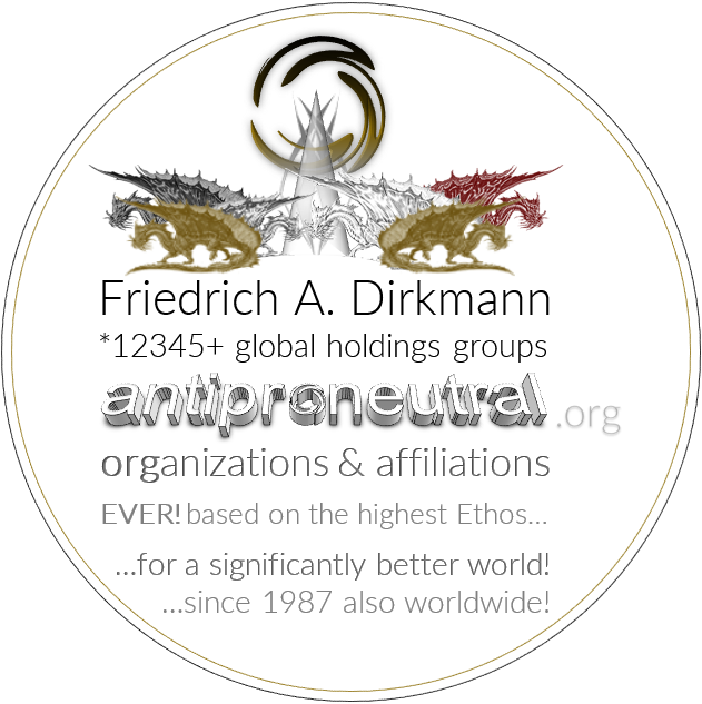 Friedrich A. Dirkmann *12345+ global holdings groups antiproneutral organizations & affiliations • EVER! based on the highest Ethos! ...for a significantly better world! ...since 1987 also worldwide!